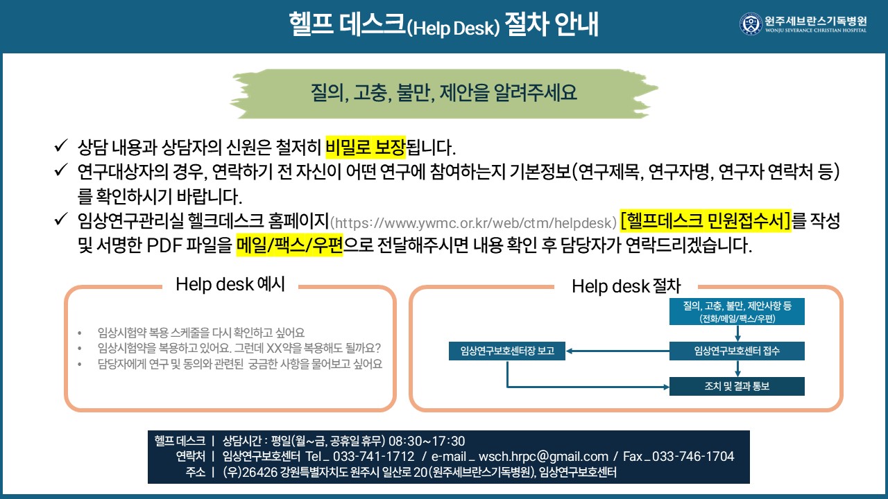 Help desk 연락처(전화,메일)가 변경되어 다시 공지드립니다.